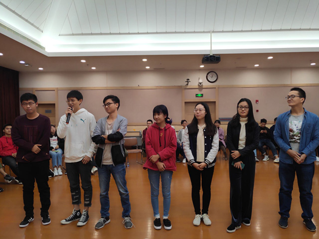 出席本次活动的有党委副书记陈哲老师、硕士生班主任白晶和博士生班主任赵砚彬,在陈哲老师的“友谊第一,比赛第二”的开场词引导下,体验式培训拉开帷幕。威廉希尔体育网UTJS体验培训师周奇通过“我给同学捏捏肩”和“大风吹”两个破冰小游戏,使现场同学们参与的热情高涨。之后,同学们被分成五个小组分别进行团队建设。团队建设活动主要包含确定每组队长、队秘、吉祥物以及各队的队名、口号、队歌和队旗。在团队建设活动中,同学们积极讨论,为团队建设出谋划策,在最终的展示环节各个小组都取得不俗成绩。