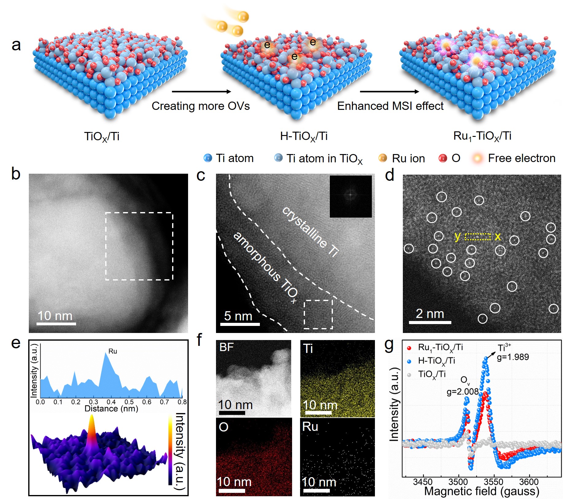 图4. Ru1-TiOx/Ti的放大生产与Ti基MSAEs普适性合成