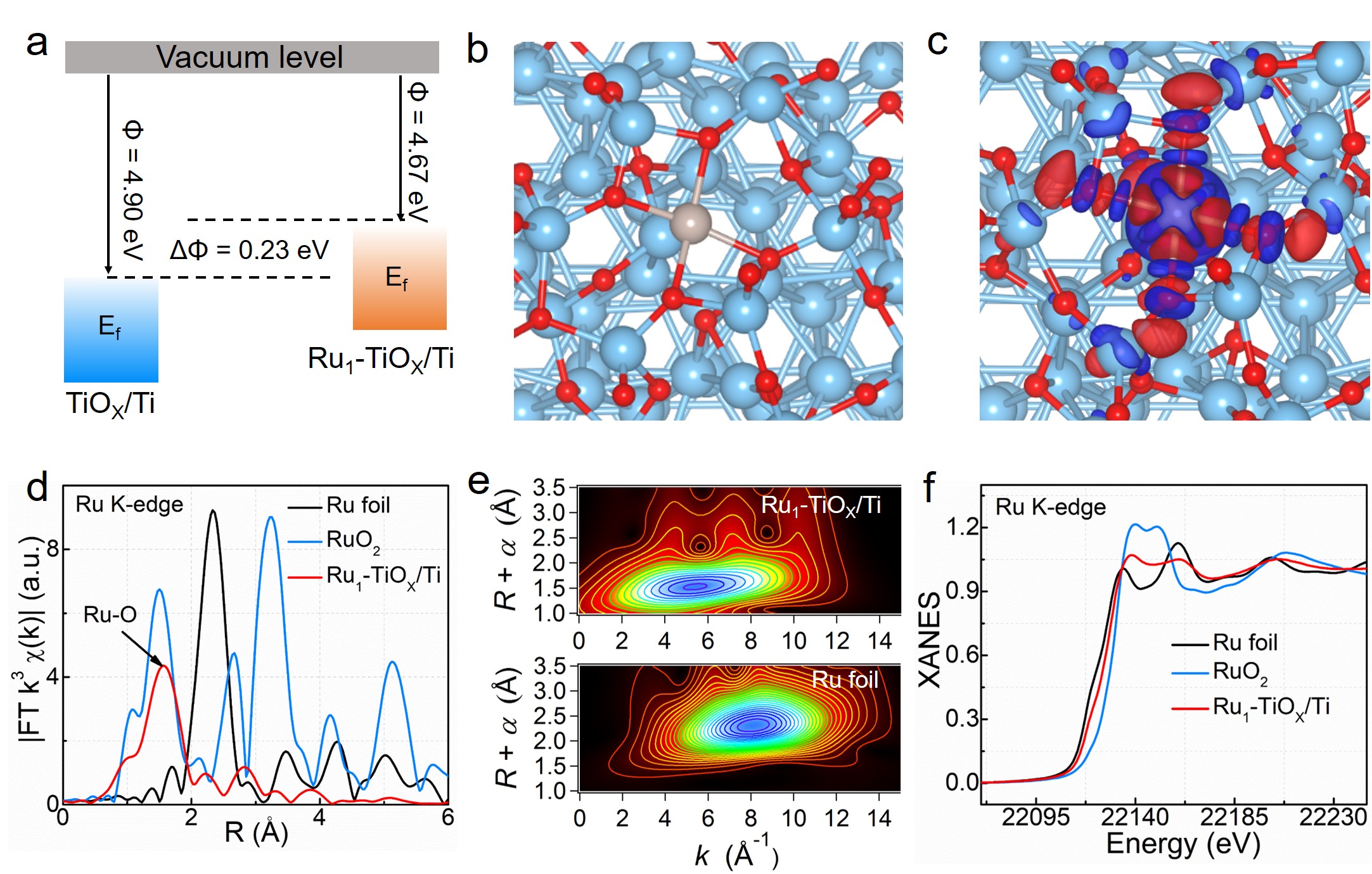 针对上述问题,团队创造性提出了一种固有氧化物锚定策略,开发了高效、稳定的钛基单原子电极。具体地,通过调控整体式钛载体表面氧化层的氧空位浓度,强化金属-载体间电子相互作用,从而将无配体的孤立活性金属原子(Ru、Pd、Pt等)固定在整体钛载体非晶层上,展现出广泛的适应性。所制备的Ru单原子电极表现出优异的电化学析氯活性,其质量活性比商业行稳阳极高出3个数量级。另外,该Ru单原子电极还能够选择性地将硝酸盐还原为氨。在−0.3 V条件下,其氨产率高达22.2 mol g−1 h−1,展现出双功能性。更为重要的是,该合成策略易于放大生产。为了证实,团队将Ru单原子整体电极从2 × 2 cm放大生产到至少25 × 15 cm,展现出巨大的工业电催化应用潜力。该研究为高性能金属基整体式电极的制备提供了一条通用的合成策略,有望助力电化学技术的发展和碳中和目标的实现。