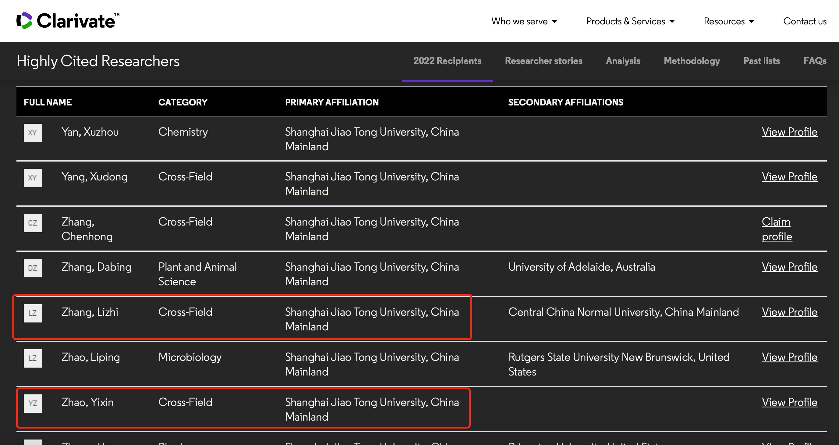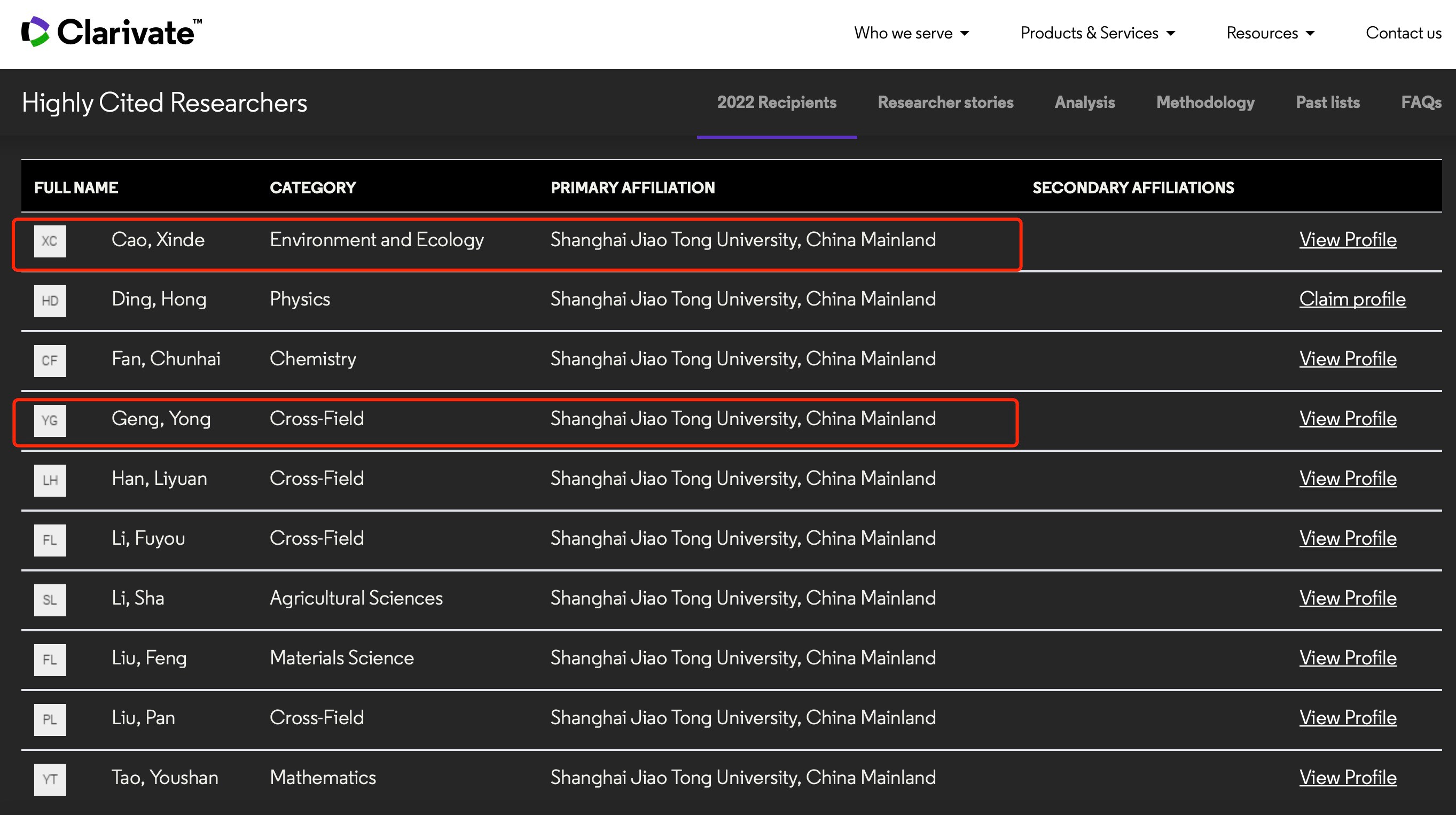 环境学院4人入选科睿唯安2022年度“高被引科学家”榜单