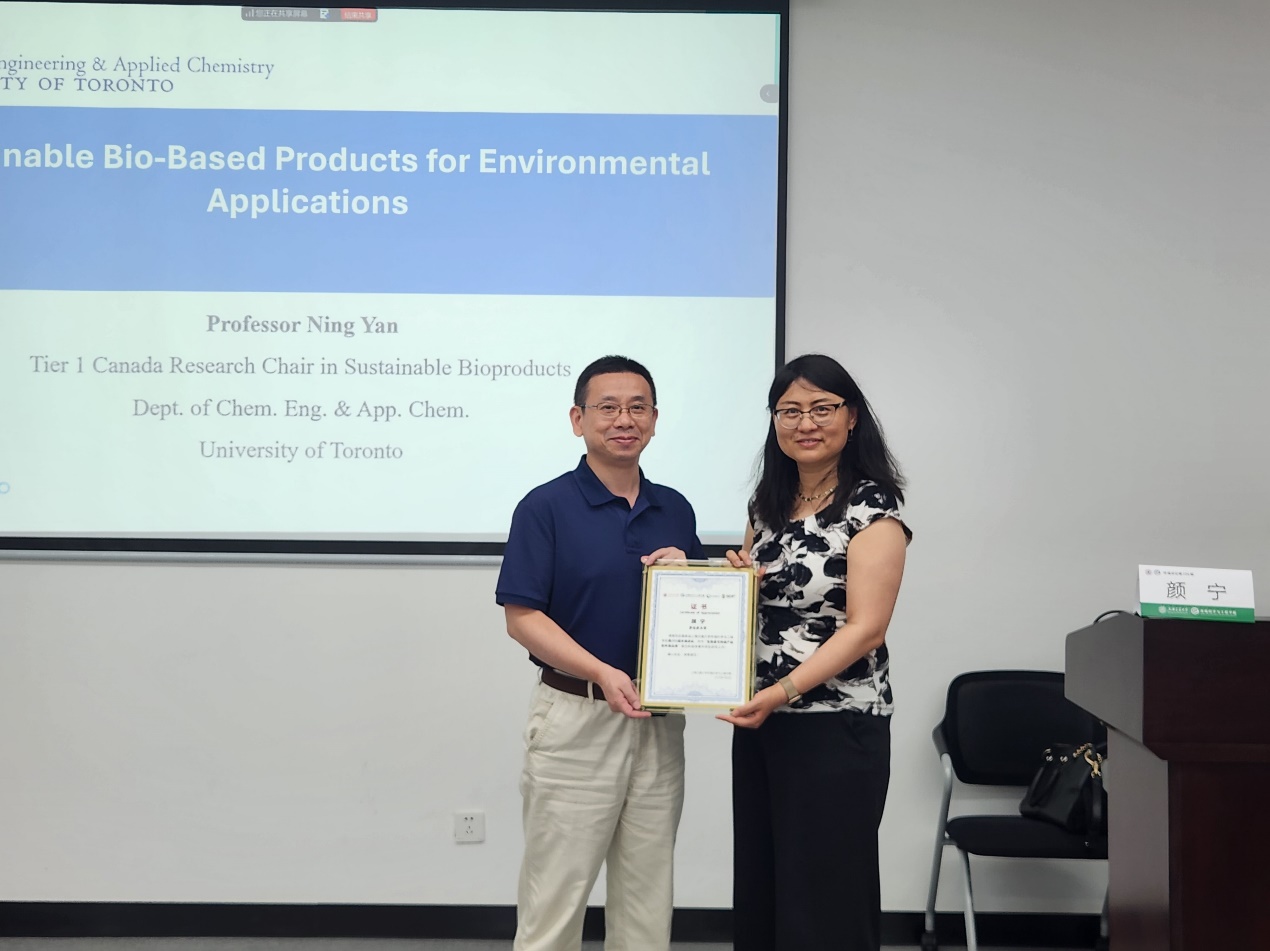 近日,应威廉希尔体育网特聘教授张礼知、长聘教轨副教授毛成梁邀请,多伦多大学颜宁教授做客第206期环境讲坛,在绿色环境楼200会议室与交大师生进行学术交流,带来题为“生物基可持续产品的环境应用”的精彩报告。此次报告由毛成梁主持。