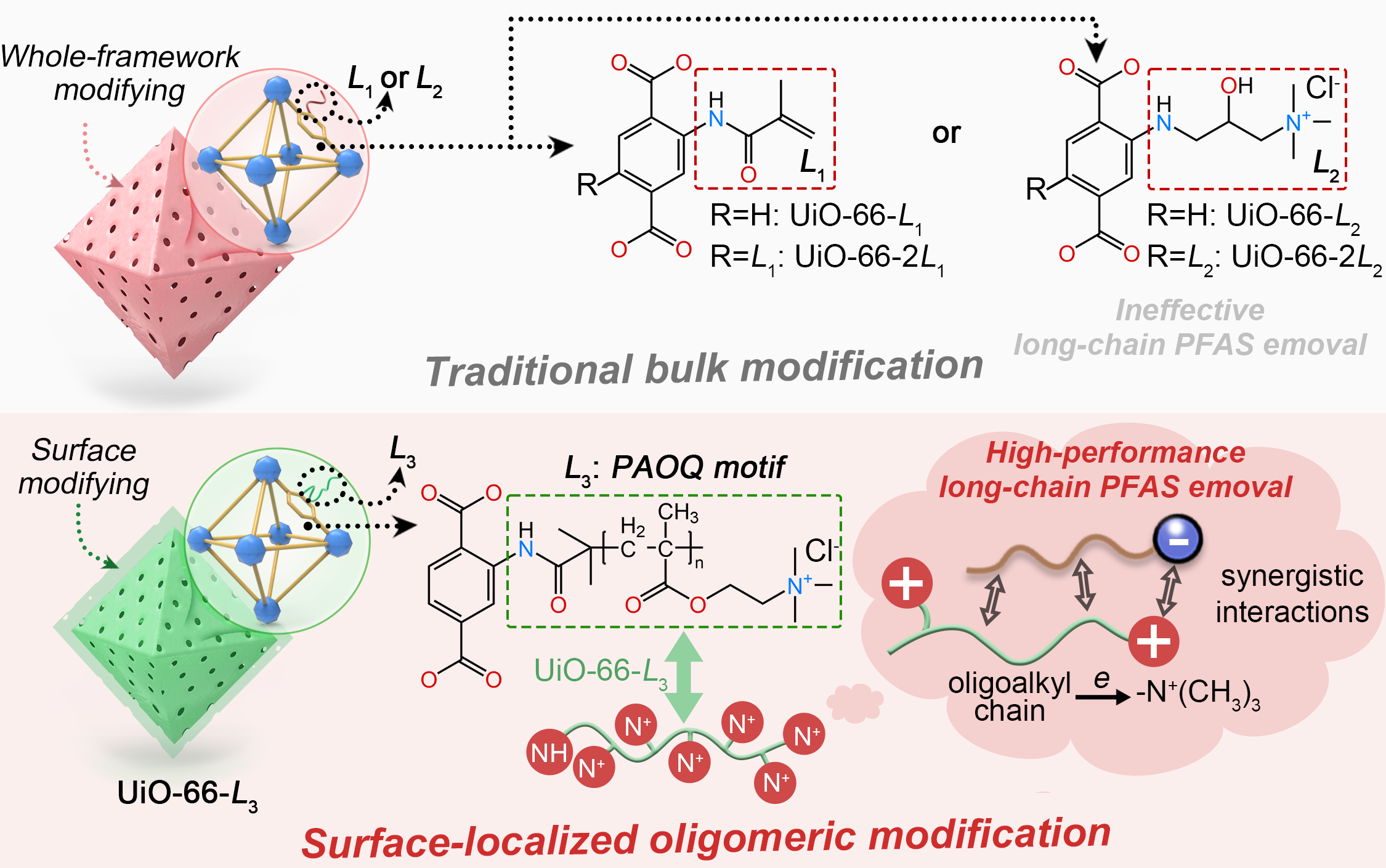 环院智慧|罗金明副研究员ANGEW发文:表面邻位烷基季胺盐低聚物局域修饰UiO-66-NH2高效去除水中长链PFAS及衍生物